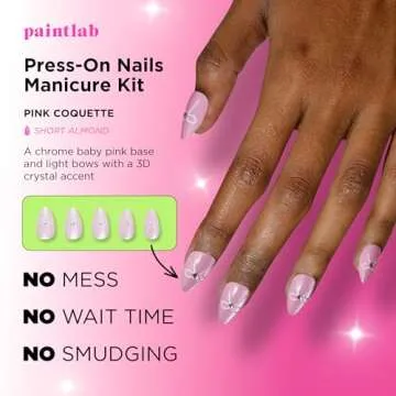 PaintLab Press-On Nails Manicure Kit - Pink Coquette, 24-Piece Set with Glue & Accessories
