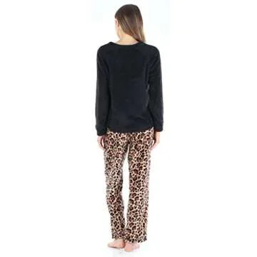 Introducing the PajamaMania Women's Fleece Long Sleeve Pajama PJ Set, a perfect blend of style, comfort, and coziness for those chilly nights. This adorable set, featuring a solid top and trendy leopard print accents, is designed with your ultimate comfort in mind. Crafted from high-quality fleece, the top offers a soft and snug fit, while the pants ensure freedom of movement, making it ideal for lounging around the house or a leisurely grocery run. Available in medium, this set embodies...