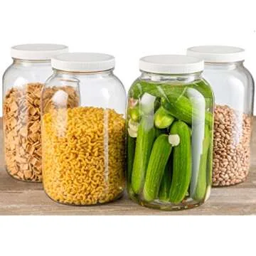 Pakkon Wide Mouth Glass Mason Jar with Plastic Lid - Perfect for Fermenting, Storing, and Canning - 1 Gallon (4 Pack)