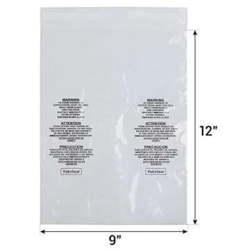 Show moreIntroducing the PaknSeal Clear 9x12 Self Seal Poly Bags – your ultimate packaging solution for a professional presentation! These poly bags, made from 100% virgin LDPE, combine durability with a crystal-clear finish, making them perfect for showcasing your products. Measuring at 9x12 inches, each bag is designed to be both supple and strong, ensuring your items remain secure while still being visible to your customers. With an industry-standard `suffocation warning` prominently displayed on the back in three languages, these bags emphasize your commitment to safety and compliance, especially for FBA sellers.