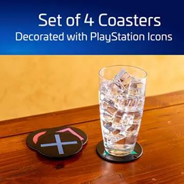 Paladone PlayStation Metal Drink Coasters - Set of Four - Slip-resistant Cork Base - Cool Coasters, Game Room Decor & Gift for Gamers