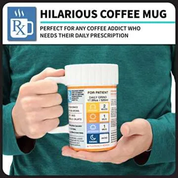 Show moreBrighten up your daily routine with the Paladone XL Prescription Unique Coffee Mug—the ideal companion for every coffee aficionado! This eye-catching 17.5oz (520ml) coffee mug mimics the playful design of a prescription medication bottle, turning your daily dose of caffeine into something truly special. Whether you're battling morning grogginess or recovering from a night out, this whimsical mug playfully commands you to drink up until you're wide-awake and hangover-free. Perfect for home or office use, it’s not just a mug; it’s a fun statement piece!
