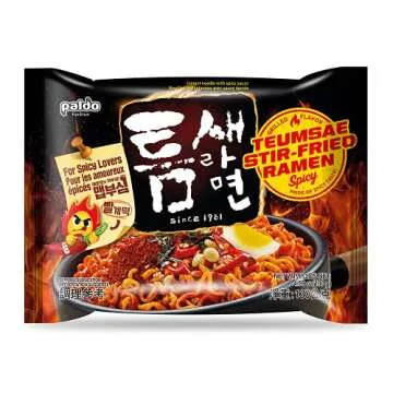 Paldo Fun & Yum Extra Hot Spicy Instant Noodles Stir-Fried, Pack of 4, Soupless Original Korean Ramyun, Spicy Ramen Challenge, Teumsae Ramen, Oriental Style Korean Ramyun, K-Food 130g (4.58 oz) x 4