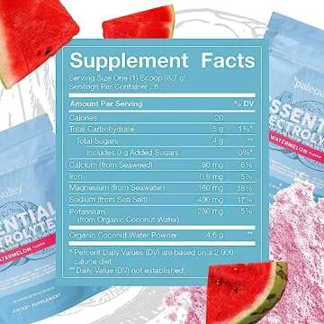 Paleovalley Essential Electrolytes Powder - Full Spectrum Watermelon Electrolyte Powder for Hydration, Energy and Muscle Recovery - No Sugar Added - 28 Servings