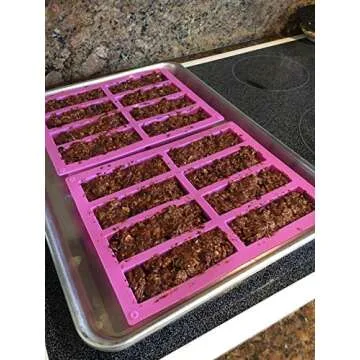 Show more Introducing the ultimate baking companion, the professional-quality silicone mold designed for crafting homemade delights! With dimensions of 10.5 x 8.26 x 1 inches and cavity sizes of 1.57 x 4.56 x 1 inches, this mold is perfect for a variety of treats like protein bars, granola bars, and nougats. Its flexible and non-stick design ensures that your baked goods pop out effortlessly, allowing for a flawless presentation every time.