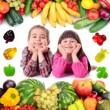 Palksky 4PCS Fruit Snack Molds Silicone, Gummy Molds Trays with Dropper for Candy Chocolate Gummies Baking(Cherries Grape Banana Apple Pineapple)
