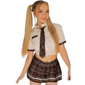 paloli Women Schoolgirl Costumes Lingerie Set Student Roleplay Outfit With Plaid Mini Skirt