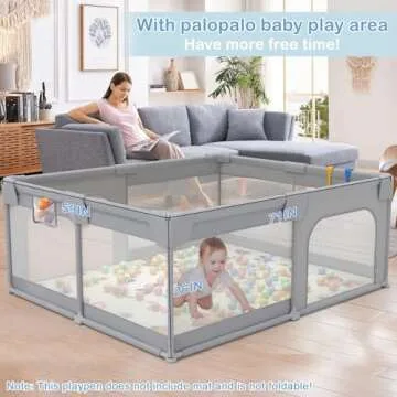 Show more Introducing the Palopalo Baby Playpen, a revolutionary and safe activity center designed specifically for your little explorer! This beautifully crafted playpen not only offers a secure environment for your baby to learn to crawl and play but also allows parents to enjoy their precious time in peace. With its enticing design, it transforms into a delightful ball pit for toddlers, ensuring endless hours of engaging play! Please note that while the playpen itself is exceptional, it does not come with padding at the bottom, so be sure to purchase an additional baby play mat for extra comfort.