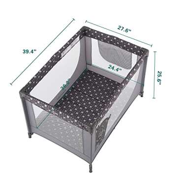 Pamo Babe Portable Crib Baby Playpen with Mattress and Carry Bag Grey