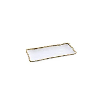 Show moreIntroducing the exquisite Pampa Bay Golden Salerno Small Rectangular Tray, a stunning addition to your tableware collection! Crafted from high-quality porcelain, this petite tray boasts a brilliant white finish accented with lustrous gold beads, making it not only a practical serving piece but also a decorative staple for any elegant occasion. Measuring 8.5 x 8.5 x 2 inches, it’s the perfect size for showcasing delectable treats like banana bread, chocolate-covered strawberries, and other delightful bites. Designed for everyday use, this tray is dishwasher safe and food safe, ensuring you can enjoy your culinary creations without lingering worries about cleaning or safety.
