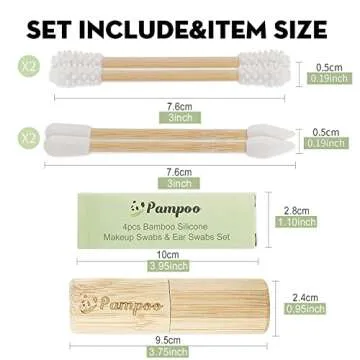 Pampoo 4PCS Plastic Free Reusable Qtips with Bamboo Carrying Case丨Reusable Cotton Swab Qtip Zero Waste Packaging丨Strengthen Thick Bamboo Stick丨Eco Friendly Bamboo Qtips Sustainable Set