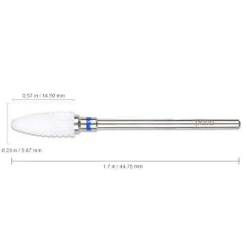 Crafted from durable ceramic, this drill bit excels in performance while minimizing the risk of 'burning' your nails, a common concern among nail techs. Users rave about how effectively it smooths surfaces, removes gel, and cleans hard-to-reach areas under the nails. With a length of 1.7 inches and a barrel size of 0.17 inches x 0.56 inches, this bit is meticulously engineered to deliver superior results time and again.