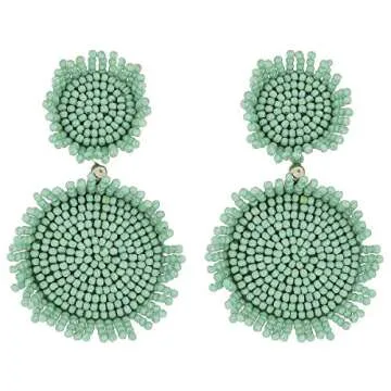 Show moreThe **Panacea Turq Seed Bead Post Earring** in mint is a stunning accessory that reflects the essence of creativity and craftsmanship. Each pair of these earrings is meticulously handmade using high-quality materials, ensuring that no two pieces are exactly alike. This uniqueness adds a personal touch that elevates your style while embracing the Bohemian trend. With their lightweight design, they can be worn effortlessly for any occasion, whether you're dressing up for a night out or adding flair to your casual look. The vibrant turquoise seed beads create a striking visual contrast that complements a variety of outfits, making them a must-have addition to any jewelry collection.