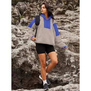Panadila Womens Fleece Pullover Fuzzy Jacket Quarter Zip Hoodie Sherpa Sweater Oversized Cozy Sweatshirt(Light Khaki Combo,M)