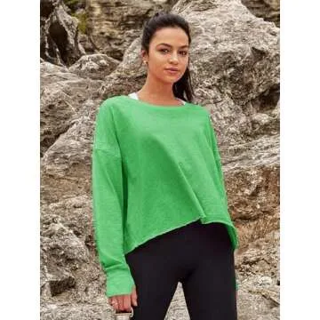 Panadila Womens Open Back Workout Top Long Sleeve Athletic Shirts Casual Crop Running Tee Y2k Yoga(Green,M)