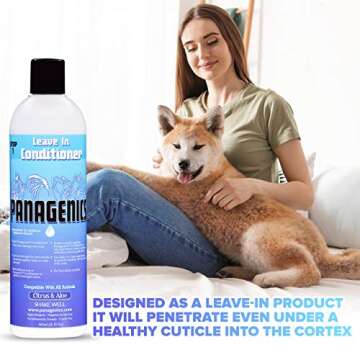 Show moreTransform the way you care for your pet's fur with the revolutionary Panagenics Pet Leave-in Conditioner. This 16-ounce bottle contains a non-traditional, lightweight formula designed to work its magic before your pet's shampoo routine. Unlike typical conditioners, which often weigh down the coat, Panagenics penetrates deep into each strand, hydrating the cortex and restoring the health and vibrancy of your pet's coat.