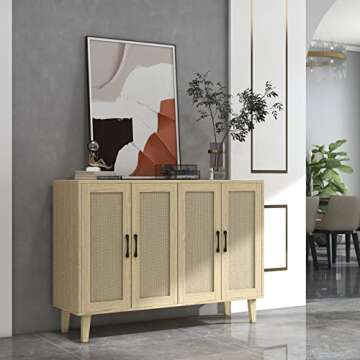 Panana Buffet Storage Cabinet with Rattan Decorating - Versatile and Stylish
