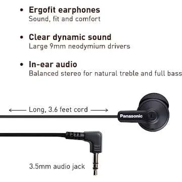 Show more Discover the ultimate listening experience with the Panasonic In-Ear Headphones, designed for those who demand quality without breaking the bank. These wired in-ear headphones feature superior sound clarity, allowing you to enjoy crisp highs and deep lows, making them perfect for music lovers and podcast enthusiasts alike. With an Ergo Fit Design, these earbuds conform perfectly to your ears, ensuring a snug fit that keeps them in place during even the most vigorous activities like running or working out.