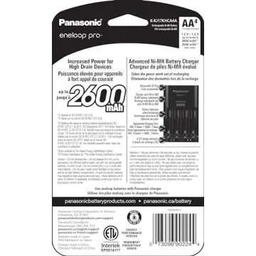 Panasonic K-KJ17KHCA4A Advanced Individual Cell Battery Charger Pack with 4 AA eneloop pro High Capacity Ni-MH Rechargeable Batteries