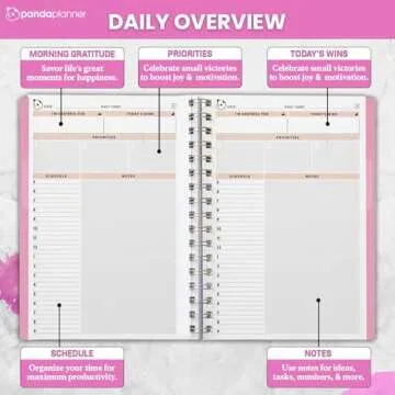 Show more Introducing the Panda Planner 2025 Undated Daily Planner, a tool crafted for the modern individual seeking flexibility combined with style. Measuring a compact 5.75" x 8.25", this daily planner seamlessly fits into your life, making it easy to carry wherever your day takes you. What sets this planner apart is its undated format which eliminates the pressure of falling behind—simply pick up where you leave off! Whether you're tackling professional projects or personal goals, the Panda Planner empowers you to effectively visualize and arrange your priorities, keeping you organized and focused.