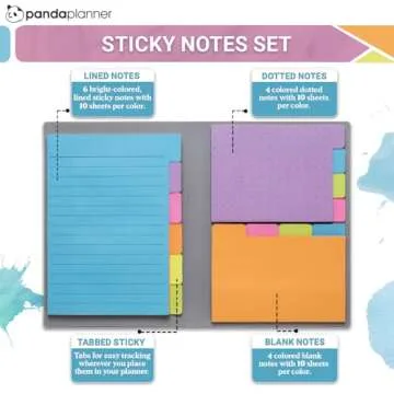 Panda Planner Sticky Notes Set โ 140 Spring Colors Sticky Notes for Home, Office, & School โ Tabbed, Dotted, Blank, & Lined Sticky Notes for Productivity & Organization (Original Colors)
