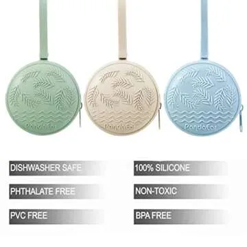PandaEar 3 Pack Silicone Pacifier Holder Case, Portable Travel Pacifier Pouch for Newborns, BPA-Free Silicone Pacifier Storage Container for Boys & Girls (Green, Blue, Cream)