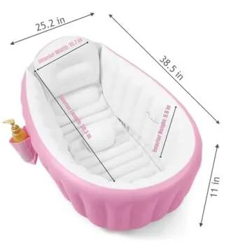 PandaEar Baby Inflatable Bathtub, Portable Travel Baby Infant Bath Tub Toddler Bathtub with Air Pump, Foldable Non-Slip Shower Basin Mini Air Swimming Pool for Newborn (Pink)