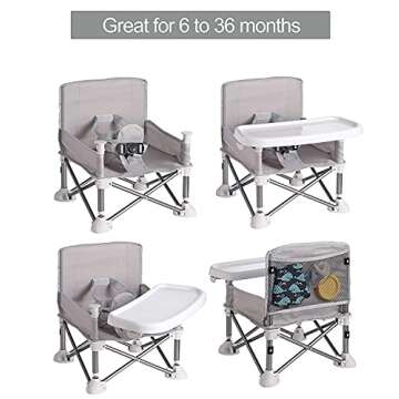 PandaEar Portable Baby Seat Travel| Compact Fold with Straps for Indoor/Outdoor Use| Great for Camping, Beach, Lawn |Toddlers, Kids, Boys, Girls (Grey with Placemat)