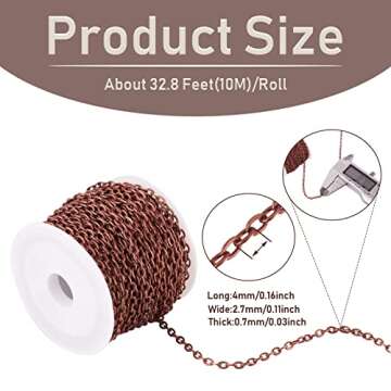 Pandahall 10M/10Yards Iron Cross Cable Chains Red Copper Color Twist Cross Necklace Finding Chains Size: Chains: About 4mm Long 2.7mm Wide 0.7mm Thick