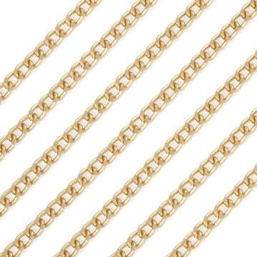 Pandahall 16.4 Feet Aluminum Curb Chains 7x5x1.5mm Golden Metal Craft Chains Unwelded Jewelry Link Chains for Jewelry Making Necklace Bracelet