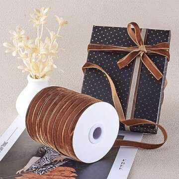 Pandahall 50 Yards Velvet Ribbon 3/8 Inch Wide Single Face Velvet Ribbon Roll with Spool for Gift Wrapping Decoration Party Wedding Easter Crafts (Saddle Brown)