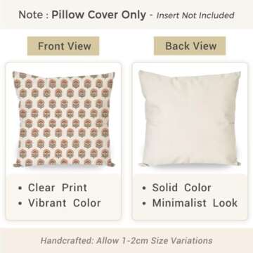 PANDICORN Block Print Throw Pillow Covers 18x18 Inch Set of 2 Green and Pink Boho Vintage Floral Outdoor Decorations Decorative Throw Pillows Cases Cushion Covers for Home Living Room Couch Décor