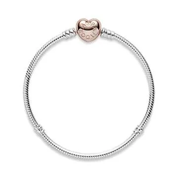PANDORA Silver W Rose Heart Clasp Bracelet - Personalize Your Style with Charms