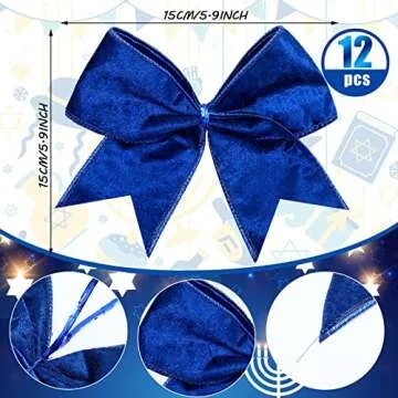Panelee 12 Pieces Christmas Bows 6 x 6 Inch Velvet Wreath Bow Hanukkah Christmas Decorations Ornaments for Xmas Tree Wreath Garland Party Gift Wrapping DIY Decor(Blue)