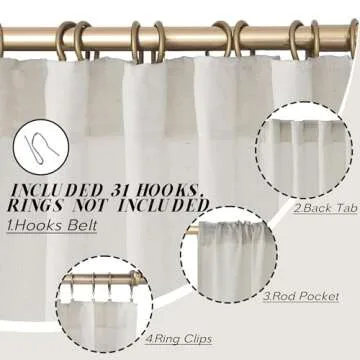 Each package includes two panels measuring 50 inches wide along with 31 hooks, offering versatile hanging options: back loops for a beautiful pleated look, small hooks on a hook belt, or a classic rod pocket style. Optional rings give you additional flexibility, and with a 3-inch rod pocket, you can easily install them in your space.