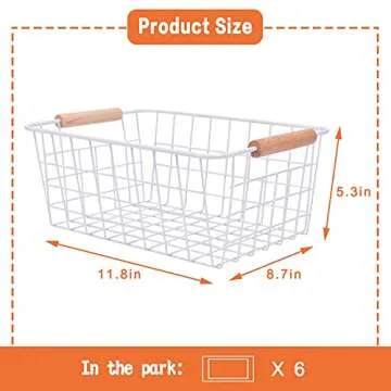 Show moreIntroducing the Panghuhu88 6Pcs White Wire Baskets: A perfect blend of functionality and aesthetic, these white wire baskets are designed to elevate your home organization game! Made from premium strong steel wire, these baskets promise durability and sturdiness, ensuring they withstand the wear and tear of daily use. With a charming white finish and wooden handles, they not only serve as practical storage but also add a touch of modern elegance to any room. Whether in the kitchen, bathroom, or your office, these versatile baskets adapt to your needs while being easy to clean and maintain. Store anything from fruits and vegetables to bathroom essentials with ease!