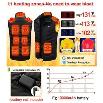 The vest heats up within just 10 seconds, providing immediate warmth whenever you need it.