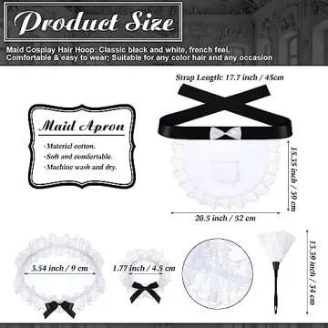 Panitay 5 Pcs Halloween French Maid Cleaning Lady Costume Accessories Set Lace Hair Hoop Feather Duster Ruffled Maid Apron for Maid Dress up Cosplay Headband Outfit, White and Black
