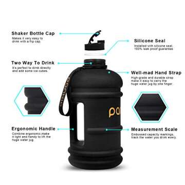 Show moreIntroducing the ultimate hydration companion, the PANKIO Big Water Bottle! This state-of-the-art water jug is more than just a container; it's a lifestyle choice designed to keep you hydrated throughout your busy day. With an impressive 2.2L (73 oz) capacity, the PANKIO Water Bottle minimizes the need for frequent refills, making it perfect for anyone on the go.