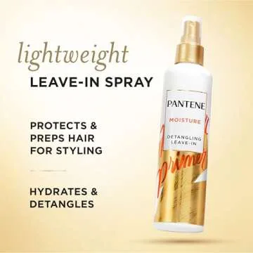 Show more Introducing the Pantene Pro-V Moisturizing Leave-In Conditioner and Detangler Spray – your ultimate solution for achieving manageable and healthy-looking hair! This incredible product is designed to tackle unruly tangles and knots, transforming your hair care routine with its enriching formula. Specifically crafted to hydrate and strengthen every strand, this is the must-have detangler that ensures your locks stay soft, smooth, and shiny without any greasy residue. With every application, enjoy the benefits of vital nutrients that cater to dry, damaged hair, effectively combatting breakage and restoring overall health.