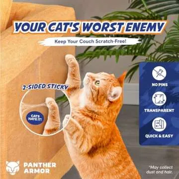 Panther Armor Cat Couch Protector – 18-Pack Double Sided Cat Anti Scratch Sticky Tape – Scratch Deterrent Tape, Effective Furniture Protectors from Cats