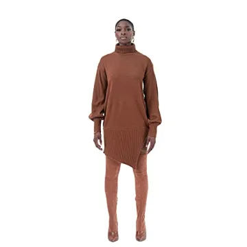 Show moreStep into elegance and comfort with the **Pantora Women's Sabrina Asymmetrical Sweater Dress**. This stunning dress, showcasing a beautiful brown hue, seamlessly marries sophistication with a relaxed fit, perfect for the modern woman. Made from a soft knit fabric, it provides both style and comfort for a variety of occasions. The funnel neck collar adds a chic touch, and the ribbed asymmetrical hem line, highlighted by a daring side split at the left leg, makes this piece as unique as the wearer. Whether dressing up for a dinner date or opting for a more casual outing, the Sabrina dress is sure to turn heads and flatter all body types, ensuring you feel confident and beautiful.