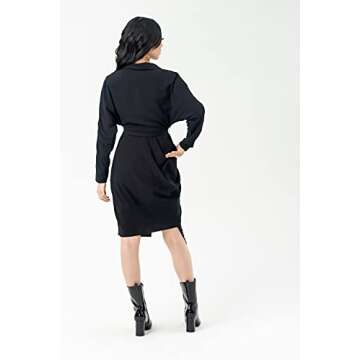 Show moreIntroducing the Pantora Women's Wanda Draped Asymmetrical Wrap Dress, a stunning addition to any wardrobe that seamlessly transitions from day to night. Designed with a chic shawl collar lapel, this dress features a sophisticated asymmetrical drape that flatters every figure, ensuring you make a bold statement wherever you go. The self-tie belt accentuates your waist, providing an adjustable fit that enhances your natural silhouette while offering comfort and style. Crafted with attention to detail, the padded shoulders add a touch of class, making this dress ideal for both casual outings and formal events.