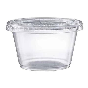 Pantry Value [4 oz. - 100 Count Clear Disposable Plastic Portion Cups with Lids - Small Plastic Condiment Containers for Sauce, Salad Dressings & Portion Control