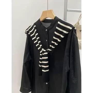 PAODIKUAI Women's Shawl Casual Solid Color Fake Sweater Cape Shoulder Fashion Wrap (Black Stripe)