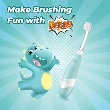 Papablic Toddler Sonic Electric Toothbrush for Ages 1-3 Years, Baby Electric Toothbrush with Cute Dino Cover and Smart LED Timer, 2 Brush Heads (Debby)