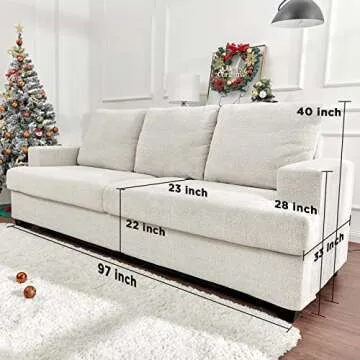 PaPaJet Deep Seat Comfy Sofa-Contemporary Chenille Sofa Couch, 3 Seater Sofa for Living Room-Oversized, Beige