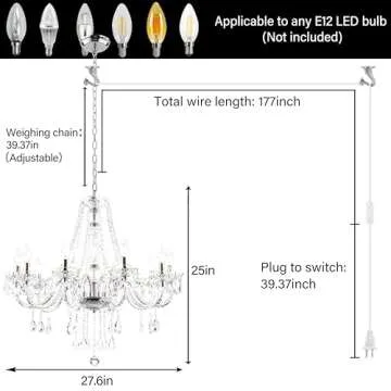When compared to other lighting options, the PAPAYA Plug in Crystal Chandelier stands out for its **combination of quality and affordability**. Many traditional crystal chandeliers are prone to cracking and require extensive care, while our chandelier’s acrylic design is resistant to damage. Additionally, the ease of installation and adjustable height set it apart from competitors. Unlike heavy crystal fixtures, this chandelier is lightweight, making it simple to handle during installation and cleaning. Furthermore, with its modern design, it seamlessly integrates into any decor style without the need for professional installation, saving time and costs for the buyer.