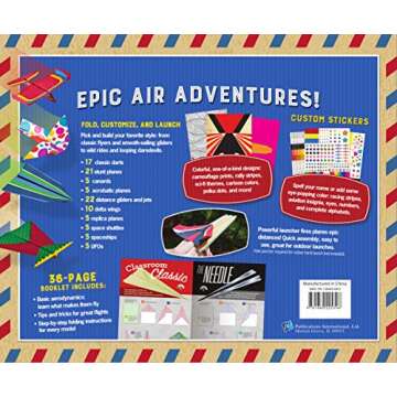 The kit features a variety of planes that can perform impressive aerial maneuvers, making each flight an exhilarating experience. With the included durable and quality paper, along with unique stickers to personalize each creation, children can take their crafting to the next level. Not only will they learn about aerodynamics and flight patterns, but they will also develop fine motor skills and hand-eye coordination during the folding process.