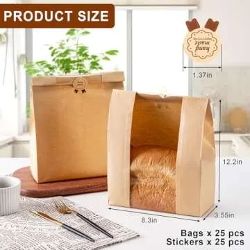 Paper Bread Bags 25PCS, Sourdough Bread Bags for Homemade Bread, Large Bakery Bags with Window Includes 25PCS Label Seal Stickers for Homemade Bread Storage(13.7x8.3x3.5 inch)